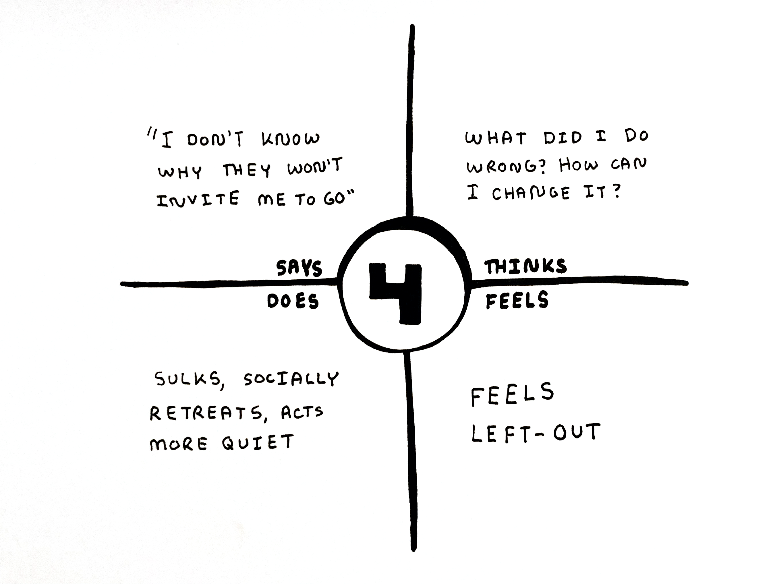 I created empathy maps to increase our understanding of different types of teenagers and how they would interact with the book’s information. From those initial exercises we quickly decided that the best way to get an idea for what would help teens, would be to ask them.