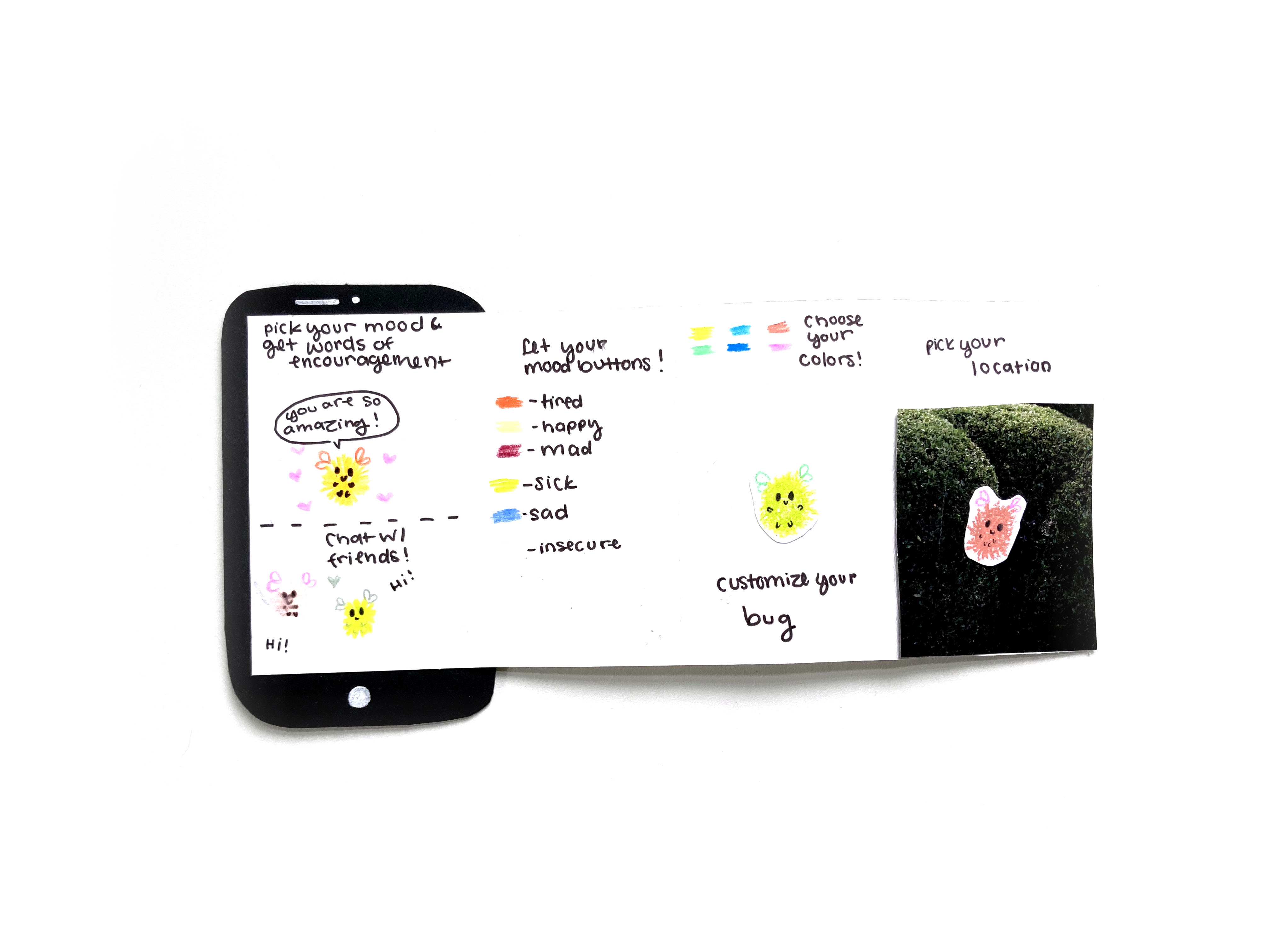 Through this experience, we also learned who teens will trust or not with their personal struggles. We also gained insight into their interests, media consumption habits, and their attitudes towards mood transformation and positivity. The collection of paper apps we co-created together will illustrate ideas and inspiration for the future of this project. The data that I collected created a solid foundation for wherever Jen Landis decides to develop her project and ensured that the product would be accessible and designed for teenagers.